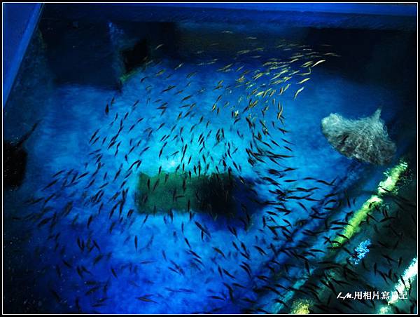 走到手扶梯旁「銀河水槽」,裡面養著沙丁魚及鯊魚,可以看到鯊魚圍捕沙丁魚自然奇觀。